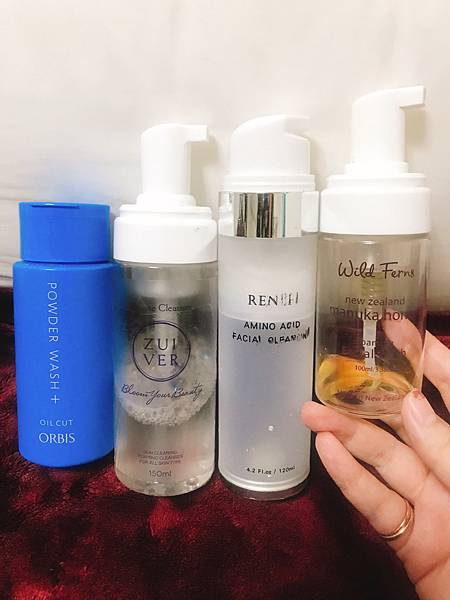 這是我日常使用的四款不同牌子的洗面粉/慕斯/乳大家不知道是不是跟我依樣第一眼看到的是最右邊的洗面慕斯
